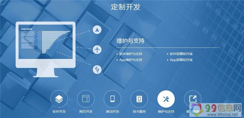 一站式服务:提供整套解决方案,系统搭建、域名注册、服务器代购、短信平台切入、支付接入、运营维护,让您全程无忧!来源www.99xinxi.net